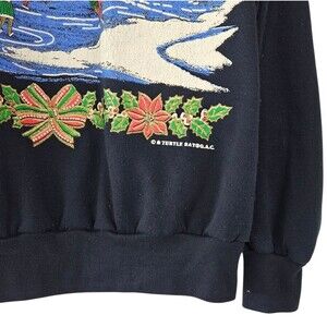 Turtle Bay Vintage Black Puffy Paint Holiday Snow Village Christmas Sweater