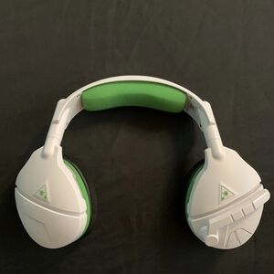 Lightly used these are fully working wireless headphones. Experience immersive sound with the gaming headset. Featuring a sleek white and green design, this headset offers comfort and style for long gaming sessions.