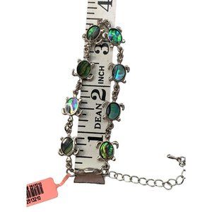 Turtle Bracelet Chain Link Adj C-Clasp Sea Turtle ABALONE Shell Swirl Jewelry