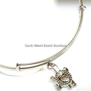 Turtle Charm Bracelet Silver Plated Beach Island Wire Nautical Island Sea Life