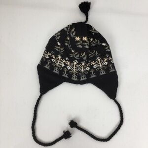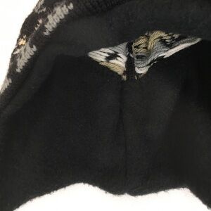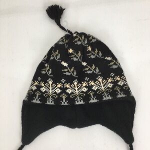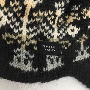 Turtle Fur Beanie Fleece Lined Ear Flap Tassel Winter Hat Wool Black Fair Isle