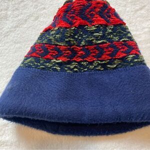 Turtle Fur Knit Hat Wool Chenille Red Green and Blue W/Top Tassel. Great used condition. Measures side to side 10.5", top to brim 8.5".