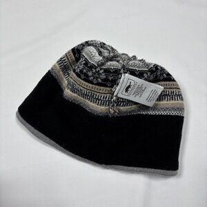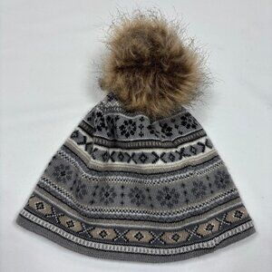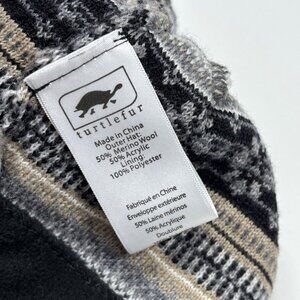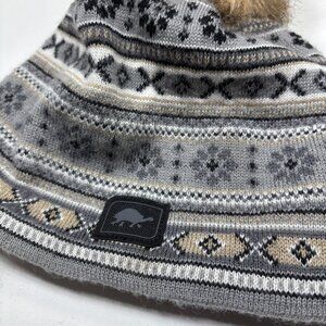Turtle Fur Merino Wool Gray Southwest Design Fleece-Lined Pom Womens Beanie Hat