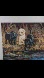 ☆Scene:An artwork depicts three black and one yellow Labrador Retriever puppies situated near a body of water, possibly a stream or pond, in proximity to turtles.