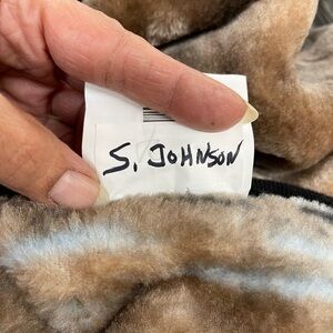 There is the name “S. Johnson” on the tag which can easily be cut out, leaving behind the brand identifying tag.