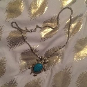 This set has never been worn(earrings are still in the package!). Included necklace with matching earrings and bracelet. Perfect gift for any turtle lover out there! The necklace a little rusty looking spot. I’m assuming it’s from where I had it hanging in my bathroom and possibly had gotten wet. Other than that, everything is in perfect condition!
