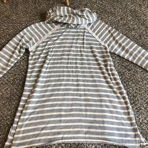 Sweatshirt material. Neck can be rolled or folded different ways.
