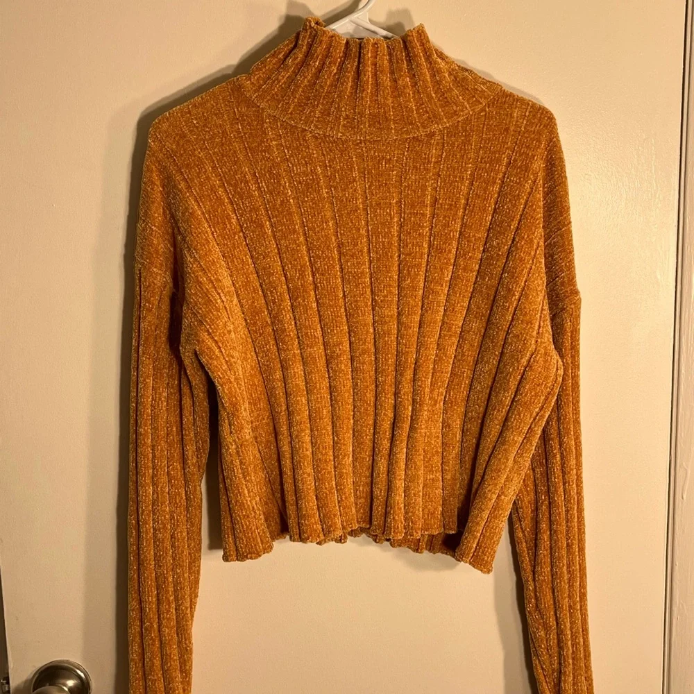 Yellow textured turtleneck. Very soft and warm.