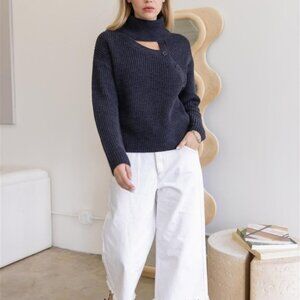 Turtle Neck Button detail Long Sleeve Sweater Dark Gray