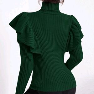 Turtle Neck Ruffle Trim Sweater