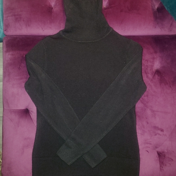 Cozy black sweater. Gently worn. Warm turtle neck. Ribbed sleeve cuffs and hem. 100% acrylic but as soft as cashmere.