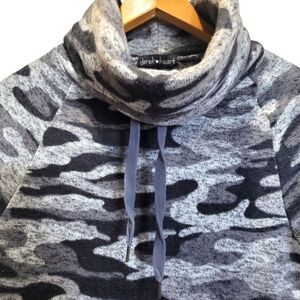 💥$6 DEREK HEART Turtle Neck w/Tie String Long Sleeve Athletic Camo Print Pullover
