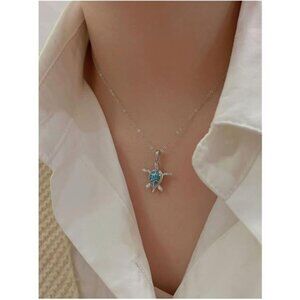 Turtle Necklace Earrings Set for Women Silver Opal Pendant Jewelry Fashion