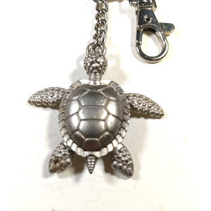 Turtle Silver Tone Articulated Keychain South Padra Island Souvenir Purse Clip