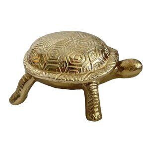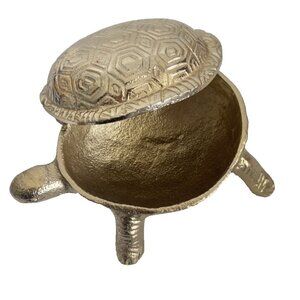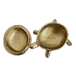 Turtle Trinket Box With Lid Gold Brass 6"L x 5"W Tortoise Shell Lover Gift