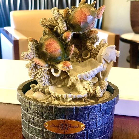 Amazon bought turtle waterfall. Brand new. Perfect condition soothing waterfall. Cord included, batteries included. Lights up.