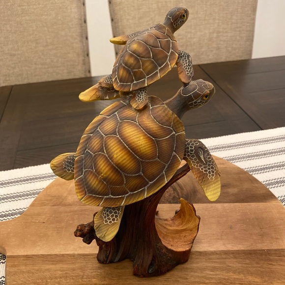 Turtle decor not sure what is made of but it’s very hard material not ceramic. It’s a great decor piece.