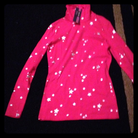 Turtul neck ,long Sleeves,hot pink with silver stars
