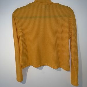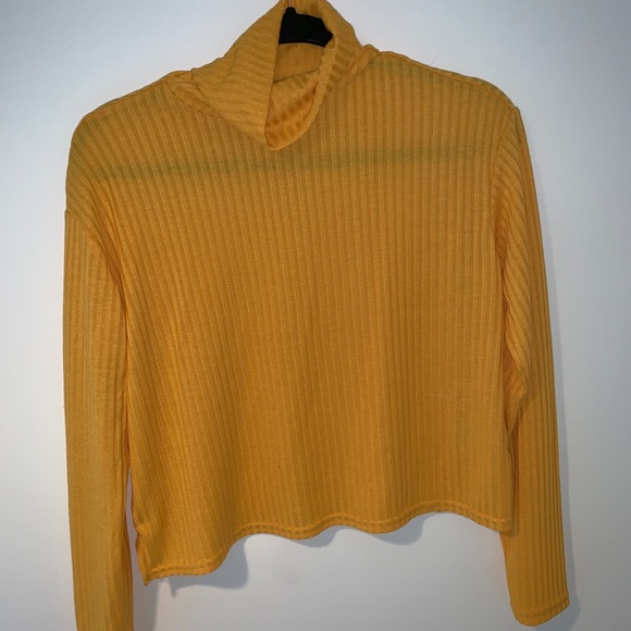 Cute soft yellow turtle neck from HM. The neck isn’t too tight and the shirt is cropped but not enough for your stomach to be visible. Never worn.