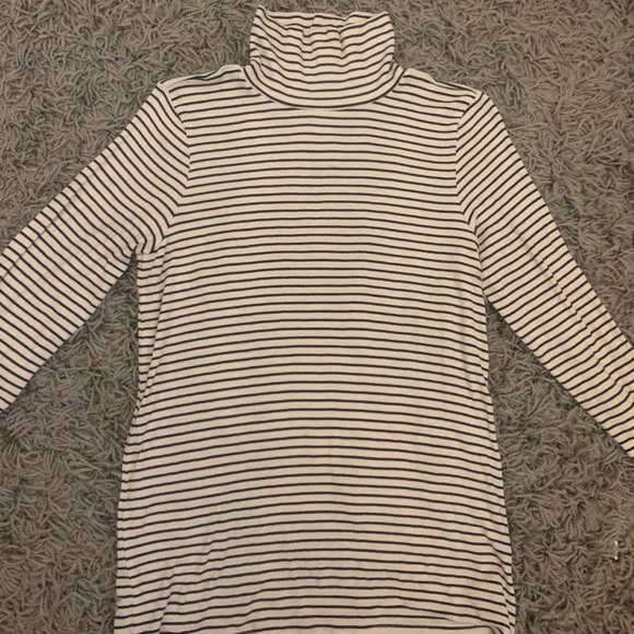 Black and white striped long sleeve turtle neck