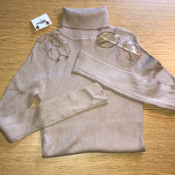 Ribbed tan turtle neck