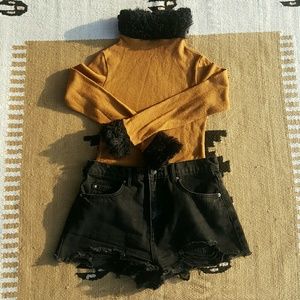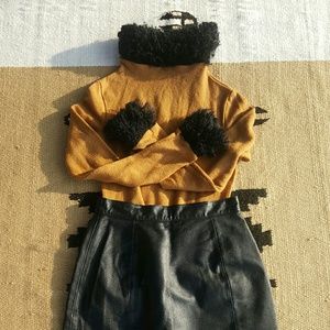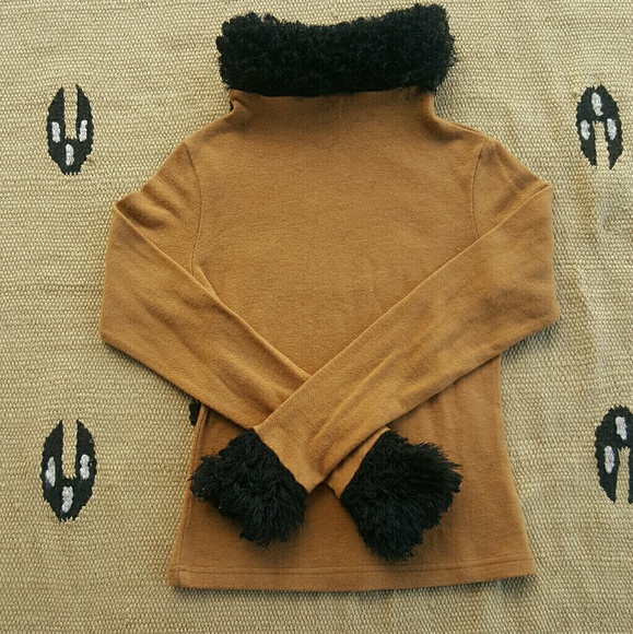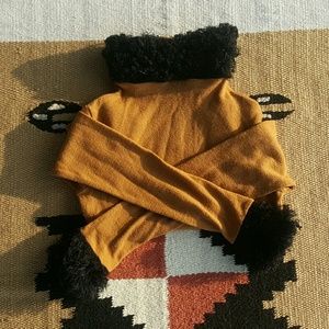 Vintage faux fur turtle neck blouse in a mustard color in great condition. It stretches so also fits someone that wears a size M and compatible with many looks, such as pictured.