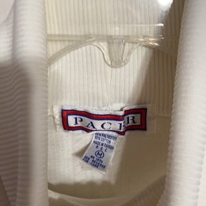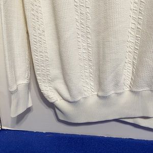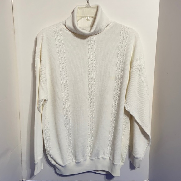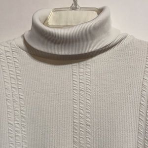 Nice turtle neck sweater with banded waist and sleeves. Crinkle stripes. White, Size medium
