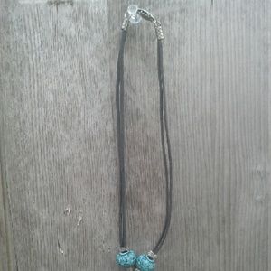 Silver tone Turtle necklace with turquoise beads on black 14" cord. Turtle is 2 1/4" x 1". NWOT.