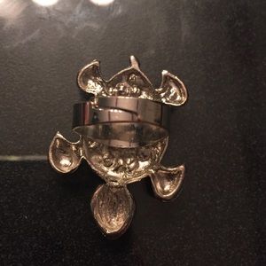 Turtle ring. Stretches to fit all sizes. White jewels. Silver metal. Barley worn. Please feel free to offer or trade.