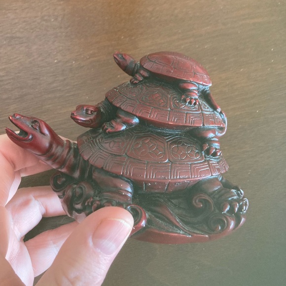 Turtle stack These three turtles are very attractive, heavy composite material. In good condition, about 4 inches tall.