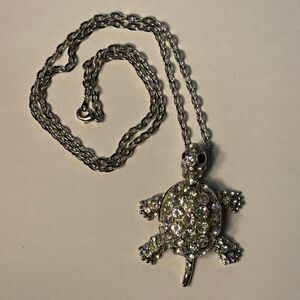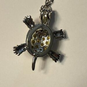 Turtle tortoise necklace with rhinestones. The legs move.