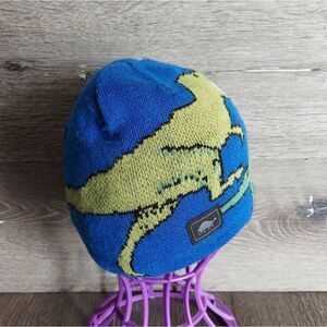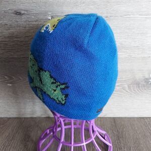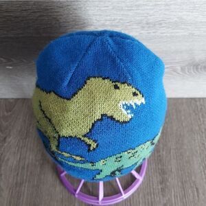 Fleece lined Acrylic knit beanie. Featuring prehistoric dino fun.