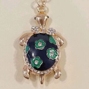 New! Turtle keychain. Rhinestone studded with flowers on the shell. Approximately 4.5" long, including the chain. Bundle to get a discount.