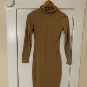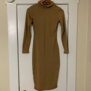 Turtleneck 3/4 Sleeve Midi Tan Dress Size Small Worn delicately No signs of wear No brand Smoke free home Pet free home