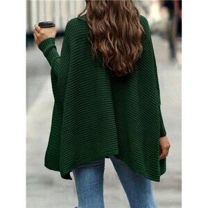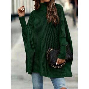 Turtleneck Batwing Sleeve Poncho Sweater,Long Sleeve Tops Knit Pullover Fall