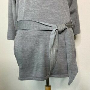GORGEOUS sweater tunic. Turtleneck sweater tunic in gray. Two pockets with a belt. Belt is knit on one side and a minor plaid on the other. Tunic could also be worn as a dress. PLEASE NOTE: Brand, size and fabric care have been cut out but feels like high quality! So pretty! Please refer to measurements which are approximate and taken flat.