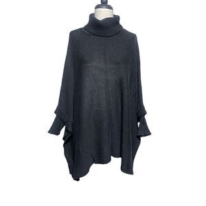 Turtleneck Black Shawl Poncho Sweater One Size Fits Most