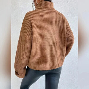 Turtleneck Drop Shoulder Waffle Knit Sweater