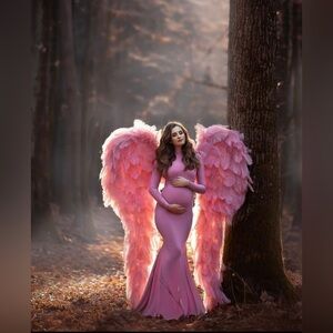 High neck/turtleneck/mock neck maternity dress, long sleeve with a train