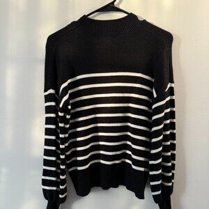 Turtleneck Long Sleeve Striped Ribbed Knit Pulllover Sweater