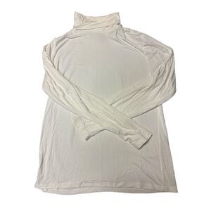 D- This is your basic long sleeve turtleneck T-shirt. Winter white or cream color, which is perfect with all your fall and winter stuff where you just need a little extra warmth. If you roll the neck down or just scrunch it, either way you will be comfortable in this soft T-shirt.