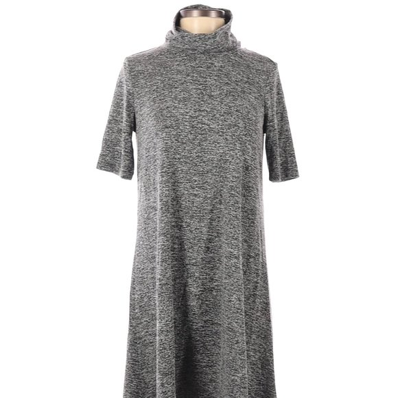 Short sleeve, turtleneck neckline, sweater dress, solid, gray, work, knee length