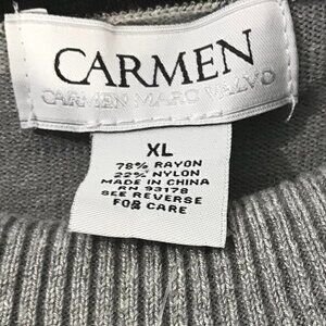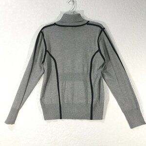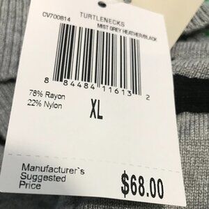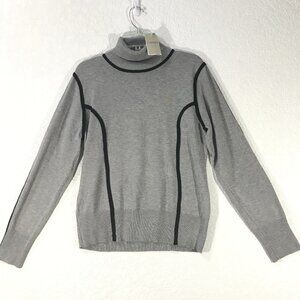 Grey and black turtleneck sweater by Carmen Marc Valvo. This sweater is brand new with tag! The size is XL and measures pit to pit 20 inches and length is 27 inches. New condition!