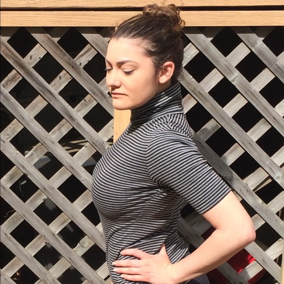 Striped turtleneck by Mossimo. Machine-washable. 58% cotton 39% modal 3% spandex.