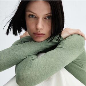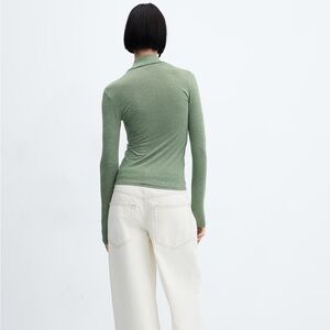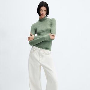 Elastic fabric. Slim fit. Turtleneck. Long sleeves. Gathered detail. Office looks. Fitted design