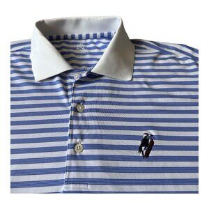 Turtleson Forest Creek Golf Club Polo L Blue White Stripe Tour Performance Shirt