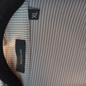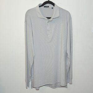 Turtleson Gray + White Striped Long-Sleeve Performance Polo Men's Size L • Ship weight: 10.5 oz