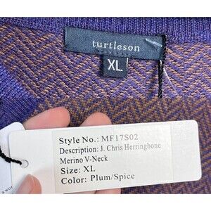 Turtleson Men Size XL Purple Herringbone Extra Fine Merino Wool Pullover Sweater