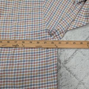 Turtleson Shirt Mens M Blue Yellow Checkered Button Up Polyester Office Preppy