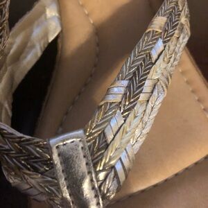 Tuscany Easy street flip flop sandal wedge gold bands 7.5WW